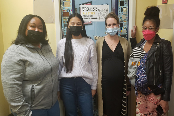 (l-r): Samantha W., Social Worker at Bro Sis, Olivia B., Care Café Intern, Dr. Brittany Stalsburg, BLS Research, and Allysha B., Care Café Intern